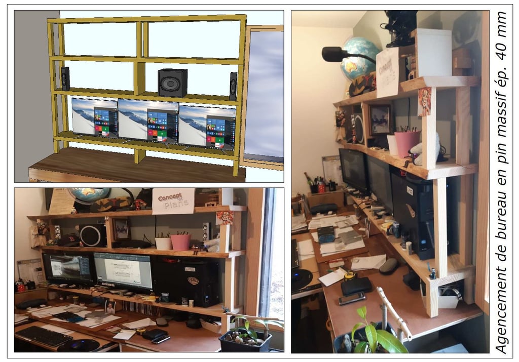 Étude, fabrication et pose d'un agencement de bureau haut.