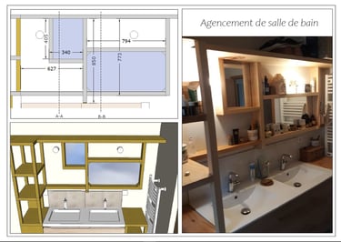 Étude, fabrication et pose d'un agencement de salle de bain.